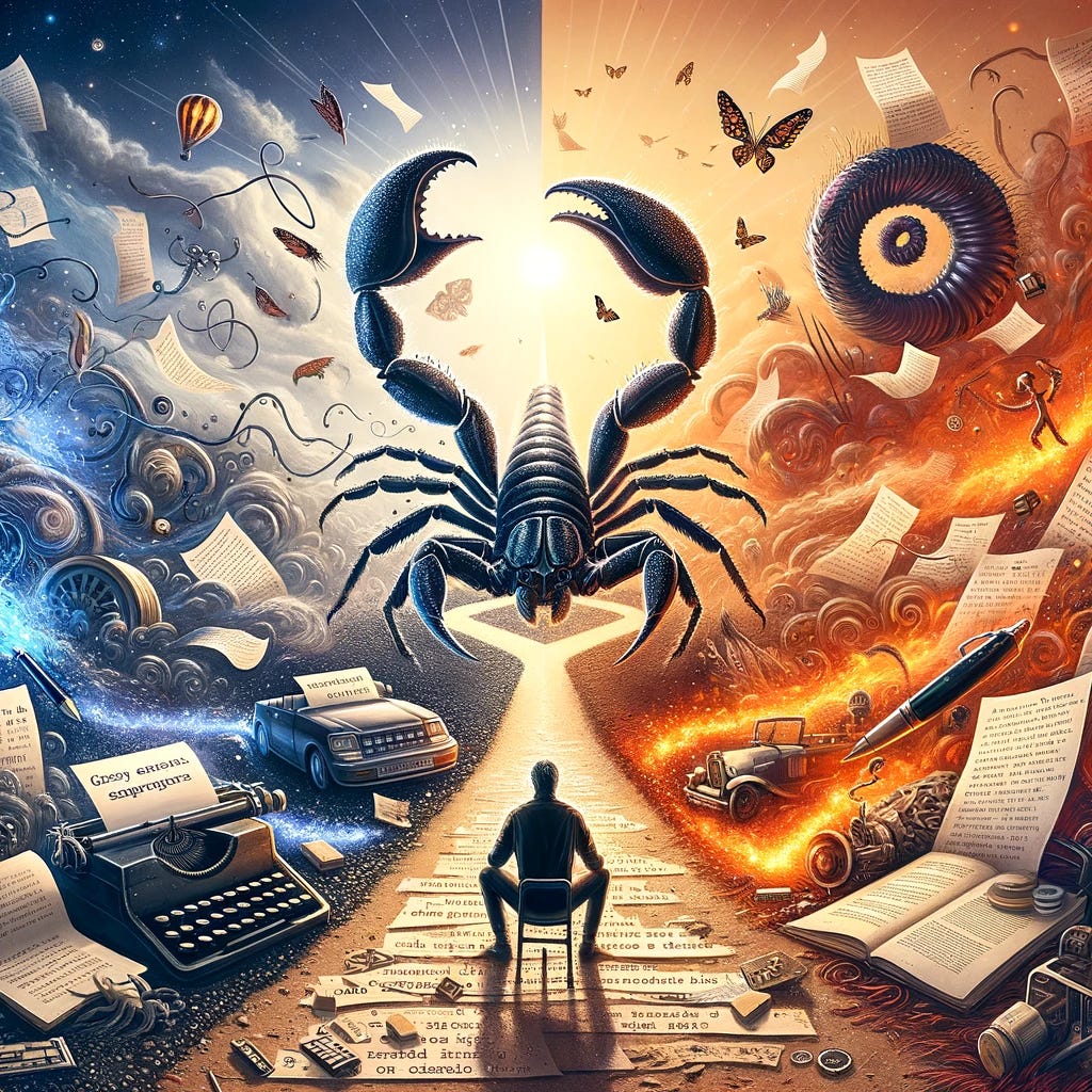 Scorpion Sting represents my quest for this equilibrium. I've realized it's not sustainable to bog down the story with excessive outlining, nor is it beneficial to navigate the narrative completely cluelessly. So, I'm starting with a burst of pantsing, allowing the story to flow naturally. Then, I'll step back and develop character profiles for Matthew, Jack, and Diane.